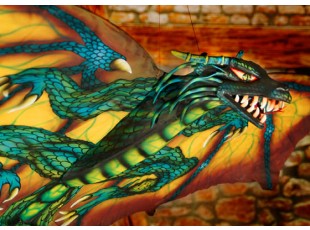 Drak s 3d tělem a hlavou. Ručně vyrobený a ručně malovaný. Převládající barva zelená. Speciální design hlavy , fosforeskující zuby a oči.