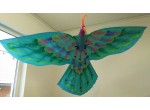 Drak s 3d tělem namalovaným jako páv. Ručně vyrobený a ručně malovaný. Převládající barva zelená a fialová.