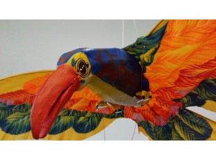 Drak s 3d tělem ve tvaru ptáka podobný tukanovi . Ručně vyrobený a ručně malovaný. Převládající barva žluto červená.